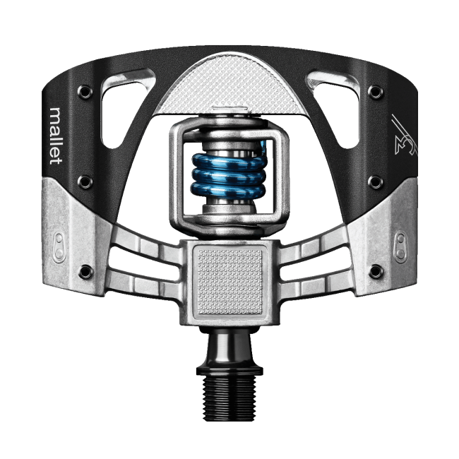 Los pedales Crankbrothers Mallet 3 están fabricados con la plataforma de 2 piezas de aluminio y policarbonato, las alas de titanio y con rodamiento interior muy suave. Cuentan con el eje de acero cromado forjado muy resistente, muelle de acero inoxidable y su ángulo de liberación es de 15 a 20 grados. Los rodamientos y el ala del cuerpo están sellados.