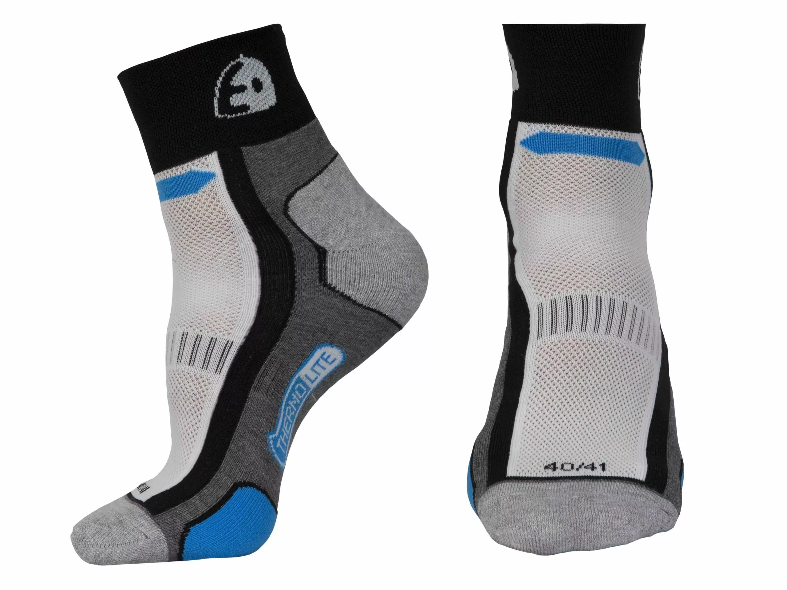 Un calcetín de múltiples paneles con material Thermolite para una mejor comodidad y transpiración. El calcetín está diseñado con diferentes rellenos en las distintas zonas del pie
