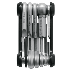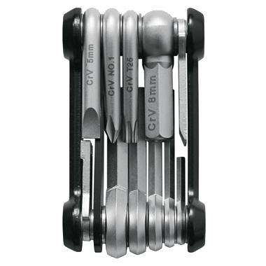 La delgada mini herramienta TOM 14 de acero inoxidable combina las funciones más importantes de la herramienta en un diseño extremadamente compacto. Con las 14 funciones integradas, como llave Allen, destornillador, llave torx, palanca de neumáticos, llaves de radios y abrebotellas / pastillas de freno, se pueden realizar muchas reparaciones en su bicicleta rápidamente.